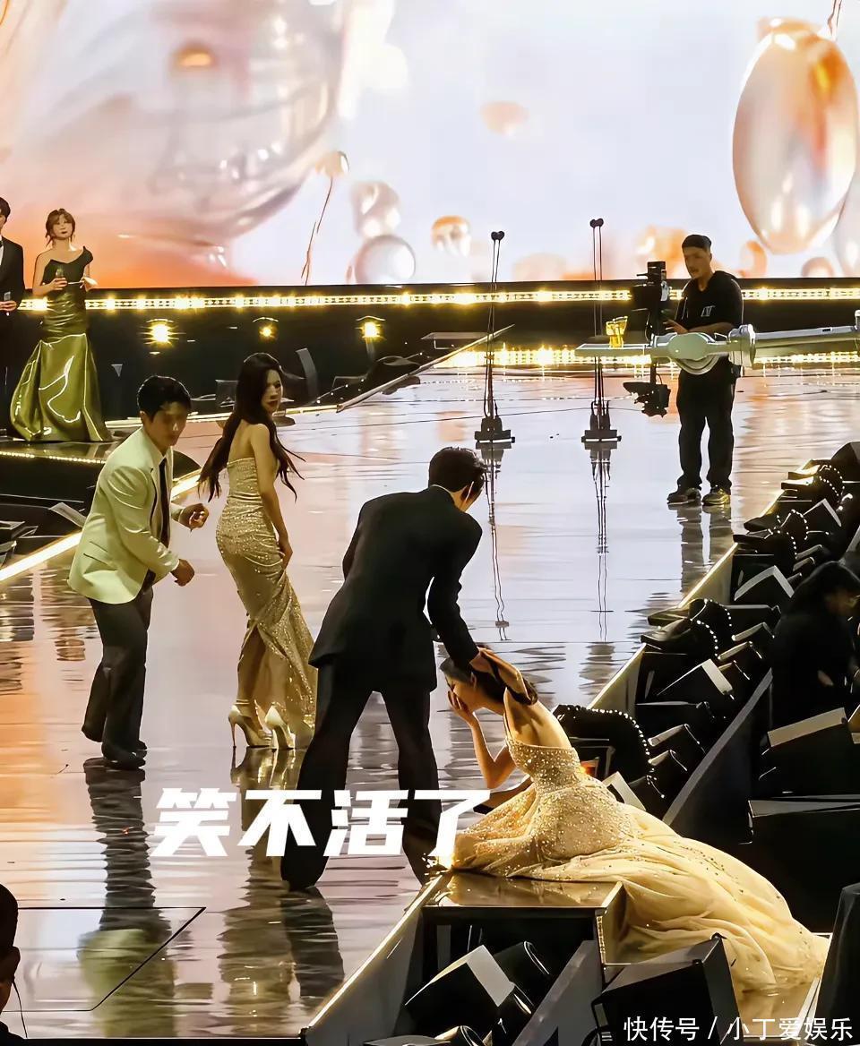 有人说这一幕撞梗当年奚梦瑶名场面,可网友看完直喊根本不是一回事!当时鎏金鱼尾裙刚铺在湿滑台阶,李昀锐第一时间冲上去扶,丞磊白鹿紧随其后起身,三人默契架起人形扶手,动作快到像彩排过,台下丁禹兮惊到张嘴、鞠婧祎捂心口的微表情,更是被剪爆全网,成了实打实的内娱活人名场面。